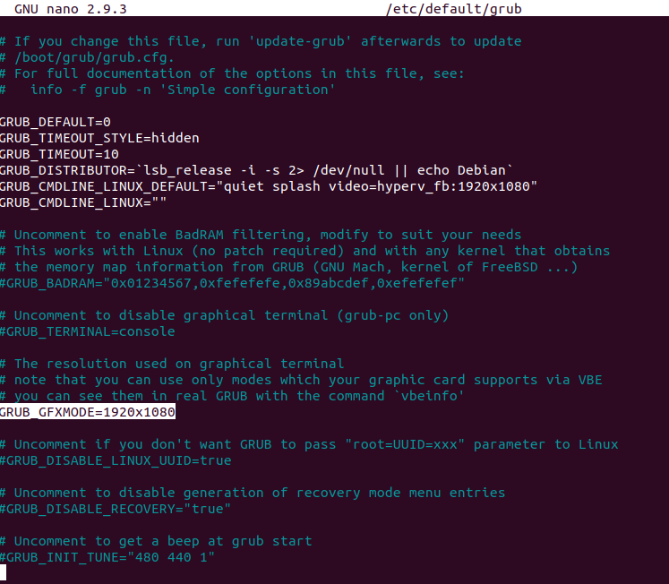 [Ubuntu 18.04] 화면 해상도 1024x768 고정 문제 해결 (임시) Ubuntu version = 18.04.1 LTS Kernel = 4.15.0-29-generic VGA = Geforce RTX 3080 낮은 버전의 Ubuntu가 필요해서 잠시 18.04 버전을 설치했는데 화면 해상도가 1024x768 하나만 나오고 고정되어 바꿀 수 없는 문제가 발생하였다. 이런 문제는 보통 드라이버 관련 문제라고 생각하는데 GRUB 파일 업데이트를 통해 임시적으로 해결할 수 있었다. 1. grub 파일을 연다. $ sudo nano /etc/default/grub 2. grub 파일 내에 아래 파일 내용을 찾아서 사진과 같이 바꿔준다. (본인이 원하는 해상도 설정) #GRUB_GFXMODE=1024x768 3. grub 업데이트 $ sudo update-grub 4. 재부팅 $ .. 쓸모있는 잡지식/우분투 2022.12.13
